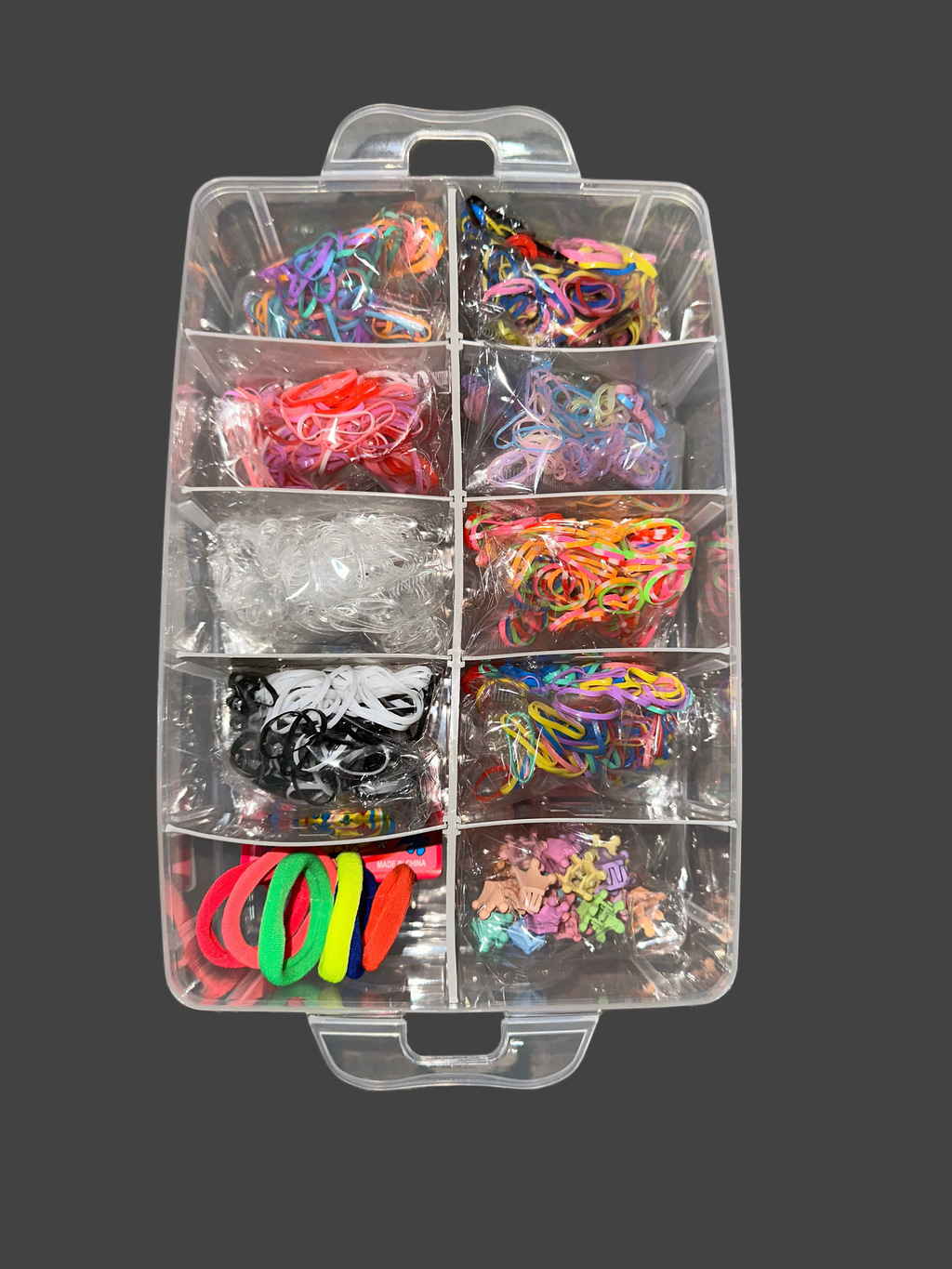 Mantenha suas ferramentas de penteados organizadas e transforme a hora do penteado em um momento especial com o Kit para penteados com Elasticos Médios e Grandes ! Perfeito para mães e pais que querem criar lindos penteados com praticidade e organização.