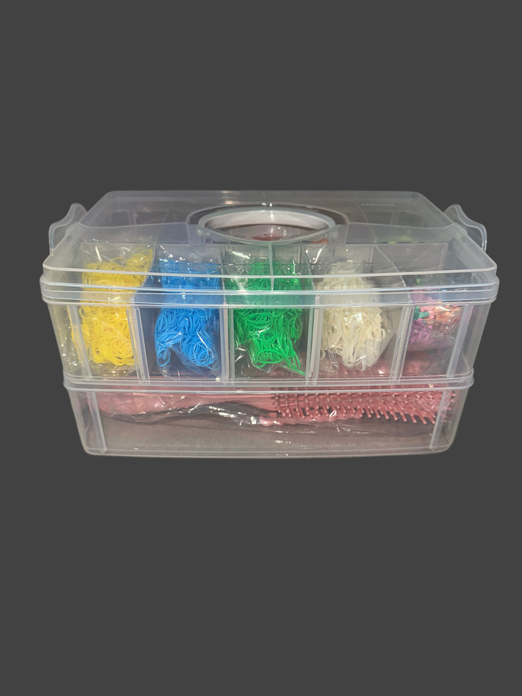 Mantenha suas ferramentas de penteados organizadas e transforme a hora do penteado em um momento especial com o Kit para penteados com Elasticos Pequenos (Maleta 2 Andares) - Papaipenteia! Perfeito para as pequenas que estão ainda com o cabelo ralo.
